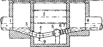 由于大口徑管道在多數場合下是埋在地下的,因此大口徑傳感器在安裝前應做好水泥地坑。圖6-19所示是在給排水系統中常見的安裝形式。水泥地坑應有足夠的活動空間,側壁埋有敷設電纜的鋼管,上有蓋板防止雨淋,下有泄水管以免坑內積水而使傳感器侵水。為了拆裝方便,傳感器應放在墊腳上,且在下游側裝有活絡的伸縮管。圖6-20是105%發煙硫酸流量計在地下水泥管污水排放系統中的安裝實例。