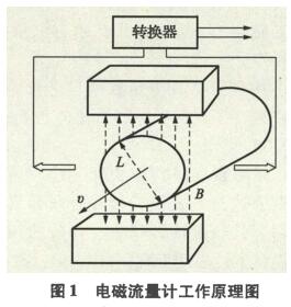 空調水流量計量表是利用法拉*電磁感應定律測量,如圖1所示,用于測量電極與運動的流體構成的回路中產生的電參數,并根據公式換算成流體速度,再測量流通截面液位高度得到流通面積,兩者相乘得到所測流量。