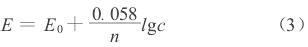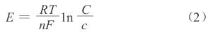 式中:n為該金屬的化合價;T為絕對溫度;R為理想氣體的摩爾常數,8.31焦耳/摩爾·K;F為法拉*常數;C為金屬離子濃度的常數;c為溶液中金屬離子的活度。