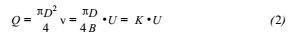 式(1)說明,導(dǎo)體在磁場(chǎng)內(nèi)作切割磁力線運(yùn)動(dòng),導(dǎo)體兩端產(chǎn)生的感應(yīng)電動(dòng)勢(shì)的大小與磁感應(yīng)強(qiáng)度B成正比,與導(dǎo)體的長度D成正比,與導(dǎo)體運(yùn)動(dòng)的速度v成正比。由式(2)可知液體的體積流量與感應(yīng)電動(dòng)勢(shì)成正比,這就是污水流量計(jì)生產(chǎn)廠家的設(shè)計(jì)原理。