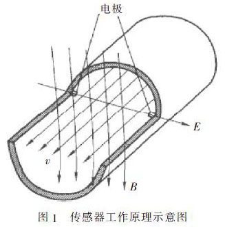 根據(jù)法拉*電磁感應(yīng)定律,當(dāng)一導(dǎo)體在磁場(chǎng)中運(yùn)動(dòng)而切割磁力線時(shí),在導(dǎo)體兩端便會(huì)產(chǎn)生感應(yīng)電動(dòng)勢(shì)。設(shè)在均勻磁場(chǎng)中,垂直于磁場(chǎng)方向有一個(gè)直徑為D 的管道。管道由不導(dǎo)磁材料制成,內(nèi)表面加絕緣襯里。當(dāng)導(dǎo)電的液體在管道中流動(dòng)時(shí),導(dǎo)電液體就切割磁力線,因而在磁場(chǎng)及流動(dòng)方向垂直的方向?qū)a(chǎn)生感應(yīng)電動(dòng)勢(shì)。如果在管道截面垂直于磁場(chǎng)的直徑兩端安裝一對(duì)電極, 只要管道內(nèi)流速υ 為軸對(duì)稱分布,兩極之間就會(huì)產(chǎn)生感應(yīng)電動(dòng)勢(shì),此感應(yīng)電動(dòng)勢(shì)與流速具有線性關(guān)系。其表達(dá)式為: