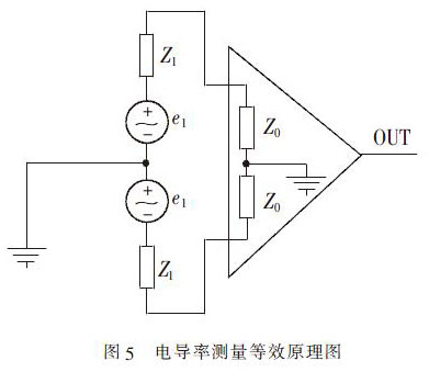 電路為對(duì)稱結(jié)構(gòu),圖中e1和Z1分別是傳感器的流量信號(hào)和對(duì)應(yīng)的流體阻抗,Z0為放大器的輸入阻抗。