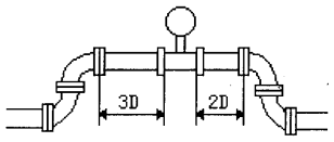 縱端面采用特殊形線的變徑整流器(己申報(bào)****),具有整流,提高流速及改變流速分布的多重作用,其結(jié)構(gòu)尺寸小,長度僅為工藝管內(nèi)徑的1/3,可以直接卡裝在儀表的兩端,不僅不需要另外附加直管道,而且可以降低儀表對(duì)上游直管道的要求。實(shí)驗(yàn)表明:儀表上游阻力件為一個(gè)平面內(nèi)的兩個(gè)90°彎頭 在一般情況下,鍋爐蒸汽流量計(jì)上游側(cè)應(yīng)加裝大于20倍管道內(nèi)徑長度的直管道,而鍋爐蒸汽流量計(jì)加裝了變徑整流器大大降低了對(duì)上游測(cè)直管道長度的要求,其阻力遠(yuǎn)遠(yuǎn)小于傳統(tǒng)的變徑管。更主要的是,可使下限流速降為原來的1/3,量程比提高到15:1以上。