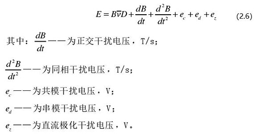 從上圖 2.5 中可以觀察到兩個(gè)電極、勵(lì)磁線圈、轉(zhuǎn)換器內(nèi)阻之間形成了一個(gè)閉合回路,將此回路稱之為初級(jí)繞組,從理論上進(jìn)行分析,磁力線 B 應(yīng)當(dāng)平行于勵(lì)磁線圈所產(chǎn)生的磁感應(yīng)線,但在實(shí)際的應(yīng)用過(guò)程中由于工藝差異,因此無(wú)法達(dá)到理想狀態(tài),會(huì)產(chǎn)生磁力線穿過(guò)勵(lì)磁線圈磁感應(yīng)線的情況,此時(shí)將會(huì)產(chǎn)生相應(yīng)的感應(yīng)電動(dòng)勢(shì),將此部分感應(yīng)電動(dòng)勢(shì)稱為變壓器效應(yīng)。此效應(yīng)同樣滿足于楞次定律,利用楞次定律進(jìn)行計(jì)算可得如下電動(dòng)勢(shì):