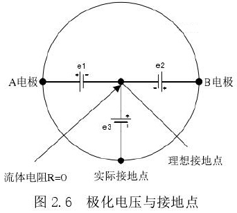 直流干擾主要來源于dn250污水流量計工作時出現的電化學噪聲。當電解質和接液部件一旦接觸,電解質中的正負離子將會即刻出現定向運動,即使沒有通電,電解質中的正負離子會產生一個定向運動,此時在電解液中會形成一個明顯的電位差,出現的此種現象被稱為極化現象。可從圖 2.6 中進行觀察,兩個電極若是產生了大小相等,方向相反的電位e1=e 2時,兩個電極之間的電位差可視為零;當兩個電極之間的電位呈現出e1 ≠e2 的關系時則表示兩個電位之間存在一個明顯的電位差,產生的電位差之間則會出現相應的電流從而形成極化電壓。此電壓與共模電壓3e 將會共同被轉換器前的放大器攝取,此時極有可能會出現放大器無法工作的情況,此種情況主要是由于極化電壓過大所導致,當極化電壓較大時將會把放大器的輸入端堵塞,此時放大器無法正常工作。為了能有效的避免發生此種情況需要控制降低在電磁場中所產生的極化電壓。
