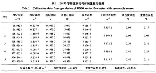 由表1和表2的實際標定數據可知,在量程比大于1:10的情況下,用不斷流煤氣流量計測量氣體或液體介質時,基本誤差及重復性均能達到中華人民共和國機械行業標準JB/T9249一1999《渦街流量傳感器》[’1中所規定的精度要求。