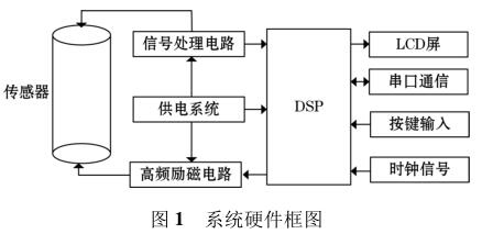 高頻勵磁煤焦油流量計由傳感器、高頻勵磁電路、信號處理電路等組成,其中高頻勵磁電路決定著傳感器磁場的強弱,勵磁電路的穩定性以及精確性決定著系統檢測的準確性以及穩定性。DSP 系統控制勵磁電路激勵傳感器線圈,當線圈中有導電液體流過時,其切割磁感線并在傳感器兩端的線圈上產生感應電動勢,利用信號檢測電路監測感應電動勢的大小,*后根據相應關系計算出液體的流量,系統硬件框圖如圖 1 所示。
