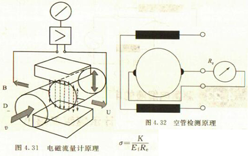 耐高溫電磁流量計(jì)是專為測量導(dǎo)電液體的體積流量而設(shè)計(jì)的。測量原理是基于法拉*電磁感應(yīng)定律。按照該定律,導(dǎo)電流體通過磁場作切割磁力線運(yùn)動時(shí),在垂直于磁場及流速的方向上產(chǎn)生感應(yīng)電動勢,此電動勢由4.14節(jié)中的式4.24)給出。其原理如圖4.31所示。