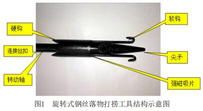 (1)氣體轉子流量計結構設計合理,旋轉機構實現了井下鋼絲在鉤身上的纏繞,軟硬鉤配合設計實現鋼絲的多角度打撈,強磁片的設計實現了小物件落物的一次性打撈,也防止了短小鋼絲落物的再次出現。