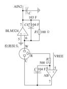 傳感器輸出電流通過檢測電阻時,測量電阻兩側的電壓值,電壓值與電阻值的比值就是電流值,好終通過計算就能獲取煙氣中二氧化硫的體積濃度。由于 SO 2 -2000 傳感器輸出電流為微安級,導致檢測電阻兩側的電壓值過小,因此利用兩極運算