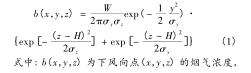 在循環流化床火炬氣流量計煙氣脫硫排放效果監測系統中,采用適于連續點源擴散研究的高斯煙羽模型 。此模型忽略重力影響,將風力情況設定為水平風,不存在垂直地面風。在保證較長時間內風向、風速、大氣穩定度等環境因素均處于穩定狀態的基礎上,構建高斯煙羽模型,可仿真循環流化床火炬氣流量計排放煙氣中二氧化硫沿下風向擴散的濃度分布,該模型滿足: