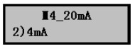 a) 按擊OK鍵,進入20mA參數設置菜單,液晶顯示如右圖。