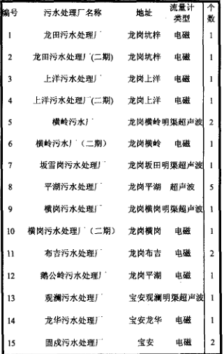 表1深圳市污水處理廠排污流量計統(tǒng)計