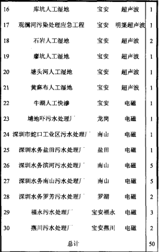 截止目前,深圳市內外所有污水處理廠(包括人工濕地、快滲)共計30余座,重點監(jiān)控的排污流量計50余臺。統(tǒng)計數(shù)據如下表(見表1)